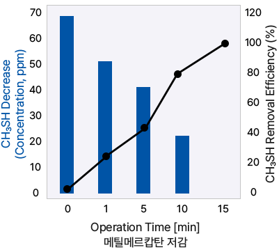 - 반영구적인 장치로 높은 VOCs 탈취 및 제거력을 가지며 유지 관리비가 매우 적게 듭니다.